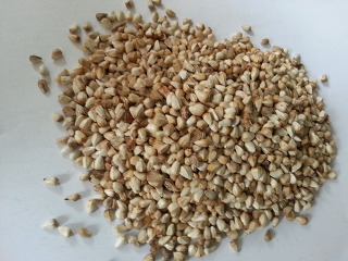 믹서기에 갈고 채로 쳐서 굶은 입자는 다시갈고....